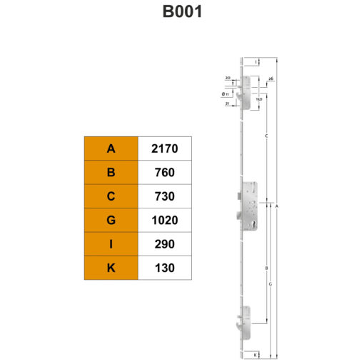 - Bij slotkast middelpunt gemeten vanaf middelpunt kruk.